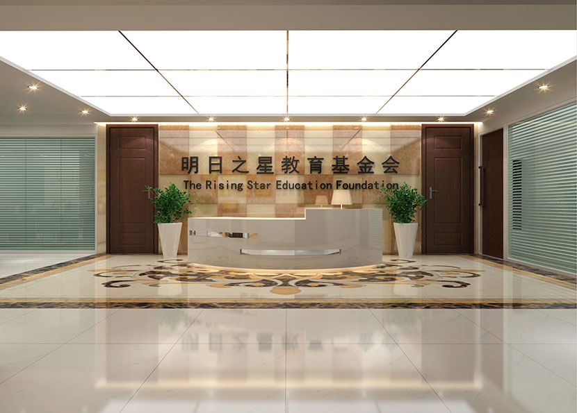 設計理念: 明日之星教育基金空間裝修風格情形脫俗,主要采用中式風格,以棕色為主色調進行搭配。墻上掛滿了公司的榮譽。采用玻璃隔斷,既保證了私密性,又遵循了綠色環(huán)保的原則。辦公室采用了木質地板讓人們賞心悅目。頂部使用了隱藏式LED燈,光線柔和均勻。