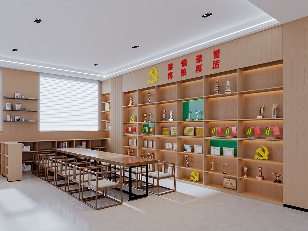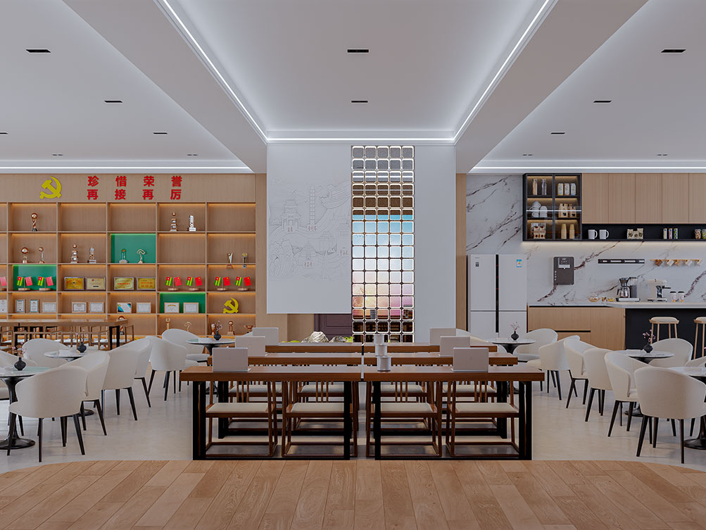 臨清國(guó)網(wǎng)職工之家裝修效果以 “溫馨實(shí)用 + 電力特色” 為核心,整體采用暖白、淺藍(lán)為主色調(diào),搭配國(guó)網(wǎng)標(biāo)志性的紅色元素點(diǎn)綴。空間劃分上,既有配備舒適沙發(fā)、綠植與書(shū)籍的休閑區(qū),方便職工放松休憩;也有設(shè)置乒乓球桌、健身器材的運(yùn)動(dòng)區(qū),滿足日常鍛煉需求;同時(shí)融入電力主題細(xì)節(jié),如墻面掛置電網(wǎng)作業(yè)場(chǎng)景裝飾畫、角落擺放小型電力設(shè)備模型,凸顯行業(yè)屬性;功能區(qū)還兼顧實(shí)用性,茶水間配備齊全廚具,活動(dòng)區(qū)預(yù)留靈活桌椅組合,可滿足職工聚餐、小型活動(dòng)等需求,整體營(yíng)造出兼具歸屬感與行業(yè)辨識(shí)度的溫馨空間,切實(shí)服務(wù)職工日常。